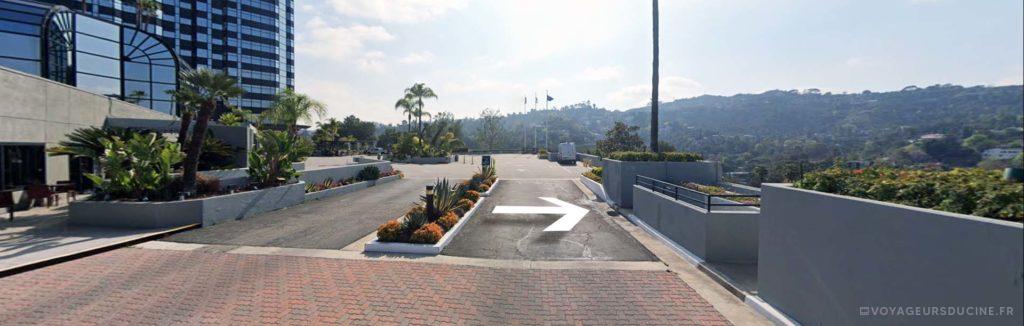 D’après mes recherches sur plusieurs sites de fans, il semblerait que ce soit l’escalier du Hilton Los Angeles à Universal. J’en ai eue la confirmation visuelle dans cette vidéo et celle-ci. À vrai dire, je ne veux pas transmettre d’information erronée. Même si je me suis rendu physiquement sur beaucoup de ces lieux, je n’ai malheureusement pas pu tous les faire. Dans ces cas-là, je cherche des informations sur Internet qui pourraient confirmer le lieu.