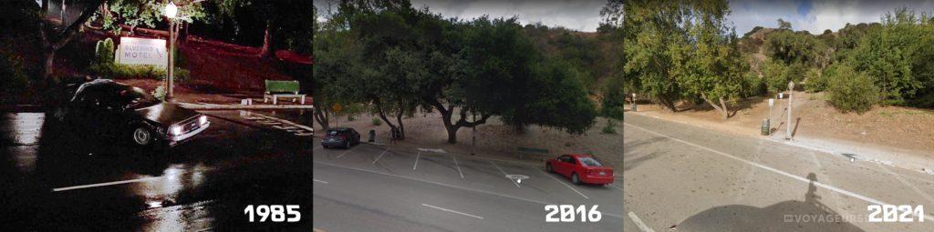 Contre toute attente, il s’agit d’un des lieux de tournage de Retour vers le futur qui, je ne sais par quel miracle, est resté à l’identique. Le parking et le passage sur le trottoir n’ont pas changés durant toutes ces années.